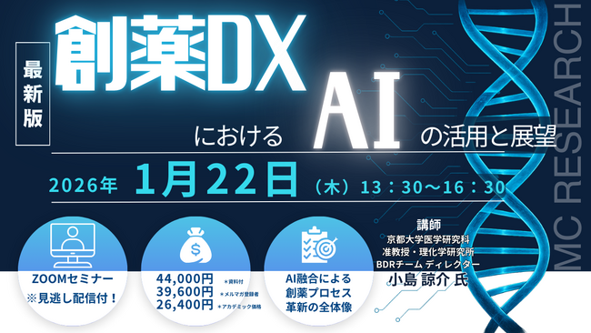 【ライブ配信/Zoom】「創薬DXにおけるAIの活用と展望」セミナー開催!1月22日(木)主催:(株)シーエムシー・リサーチ