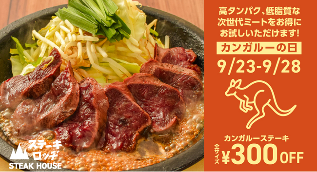 初めてのカンガルー日和は『ステーキロッヂ』へ。9月23日(火・祝)~28日(日)は「カンガルーステーキ」が300円割引に。期間限定「ジンジャーソース」も登場!