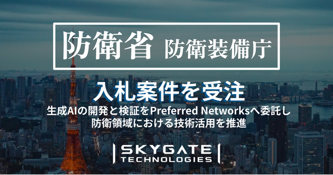 スカイゲートテクノロジズ、防衛省の事業「生成AIによるCOG分析作業支援に関する概念実証役務」を受注