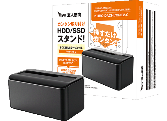 玄人志向から、外付けドライブスタンド『KURO-DACHI/ONE2-C』と、2.5インチ外付けドライブケース『GW2.5AB-SU3P』を発売