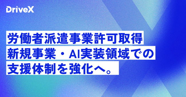 株式会社DriveX、労働者派遣事業許可を取得。新規事業・AI実装領域での支援体制を強化へ