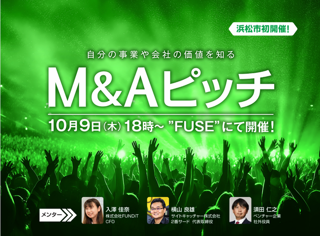 地方開催第4弾!M&A(株式・事業譲渡や相談)のピッチイベント 10月9日(木)に「M&Aピッチ」浜松市で開催!