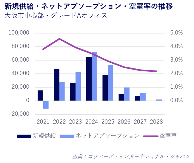 コリアーズ、「オフィスマーケットレポート | 大阪市中心部・グレードAオフィス | 2025年第4四半期」を発刊