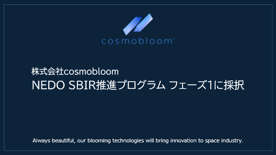 cosmobloom、NEDO SBIR推進プログラム フェーズ1に採択