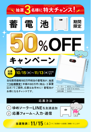 ゆめソーラー、「蓄電池50%OFFキャンペーン」を開催!
