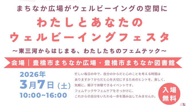 【国際女性デー特別企画】まちなか全体がフェムテックの場に。地域で考え、地域に広める「わたしとあなたのウェルビーイングフェスタ」を愛知県豊橋市で開催