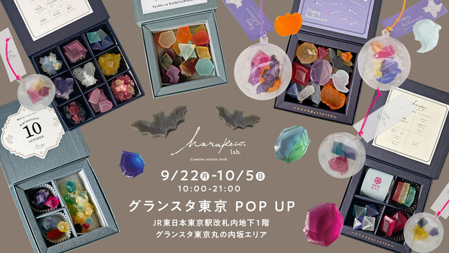 東京駅にハラペコラボが期間限定でポップアップ出店をスタート!職人技が光る、鉱物や宝石みたいな琥珀糖こうぶつヲカシやオリジナルグッズが勢揃い