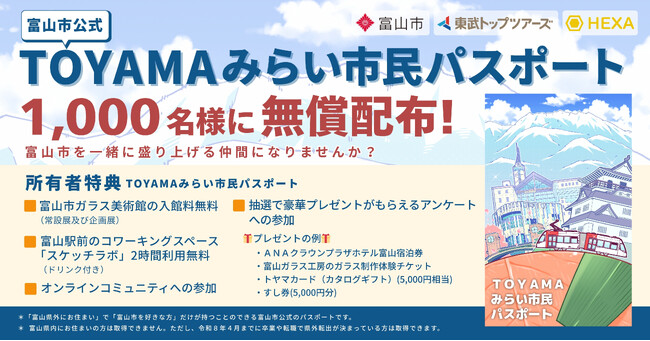 富山市公式「TOYAMAみらい市民パスポート」をHEXAで提供開始!「富山市が好き」を、関係人口の拡大につなげる新しい仕組み