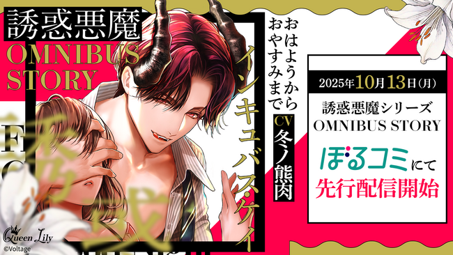 オトナ女子に捧げるシチュエーションボイスドラマ レーベル「Queen Lily」人気シリーズ「誘惑悪魔」のOMNIBUS STORYケイ編(CV.冬ノ熊肉)10月13日(月)よりぼるコミ先行配信開始!