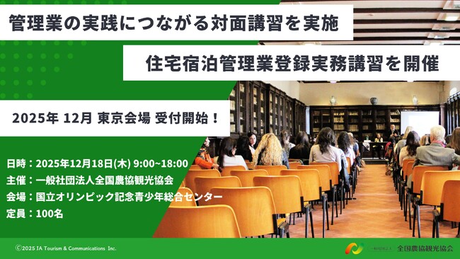 【受講者 900 名突破】「住宅宿泊管理業登録実務講習」を 12 月 18 日(木)に東京・渋谷で開催!