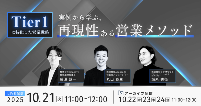新時代の営業を提案するEmooove、『Tier1に特化した営業戦略 実例から学ぶ、再現性ある営業メソッド』を10月21日(火)にオンラインで開催