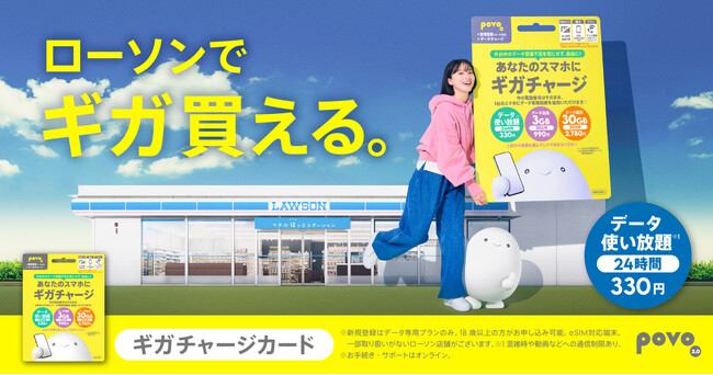 povo、全国のローソンで販売中のデータeSIM「ギガチャージカード」において「30GB(30日間)」の提供を開始