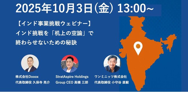 日本企業のインド事業挑戦を成功に導く!「机上の空論で終わらせないための秘訣」をテーマに、3社共催オンラインセミナーを10月3日(金)開催