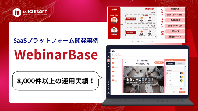 エックスラボの構想をMiichisoftが形にしたWebinarBase。8,000件以上の成功実績を誇る、日本トップクラスの自動化ウェビナープラットフォーム。