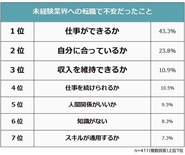【未経験業界への転職で不安だったことランキング】経験者411人アンケート調査