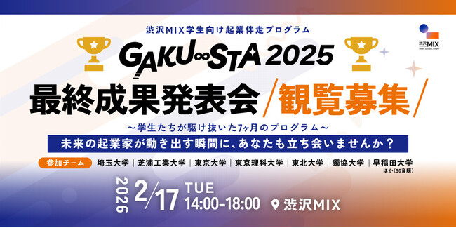 渋沢MIX学生向け起業伴走プログラム「GAKU∞STA」最終成果発表会の観覧者を募集します