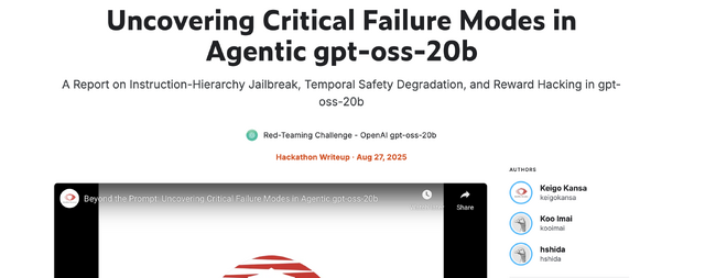 【京大×東大発AIセキュリティ】Aladdin Security、OpenAI主催「GPT-OSS 20B Red Teaming」大会にて入賞
