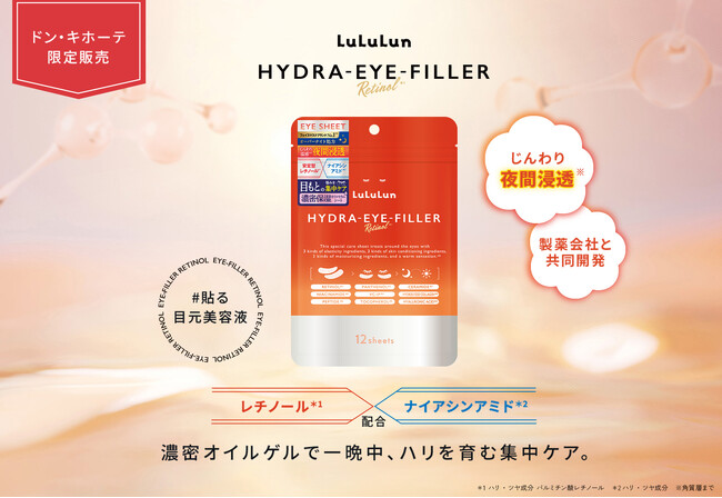 製薬会社と共同開発。日本No.1ブランドのルルルンから部分用シート状美容液「ルルルン ハイドラ アイ フィラー」が誕生。目元の悩みに特化した濃密オイルシートで、ハリ・くすみを徹底ケア。