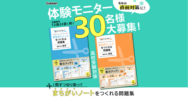 【中学生モニター30名募集】SNSで「画期的!」の声が続出!『1問ずつ切り取って、まちがいノートをつくれる問題集』で、効率的に高校入試対策!<締切12/22(月)>