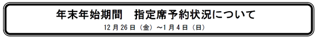 年末年始期間 指定席予約状況について12 月26 日(金)~1 月4 日(日)