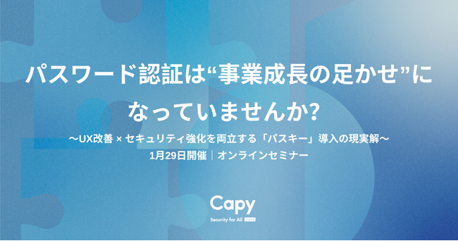 Capy株式会社【1月29日開催・オンラインセミナー】パスワード認証は“事業成長の足かせ”になっていませんか?~UX改善 × セキュリティ強化を両立する「パスキー」導入の現実解~