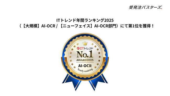 「受発注バスターズ」が、「ITトレンド 年間ランキング2025」 【大規模】AI-OCR / 【ニューフェイス】AI-OCR部門で第1位を獲得しました