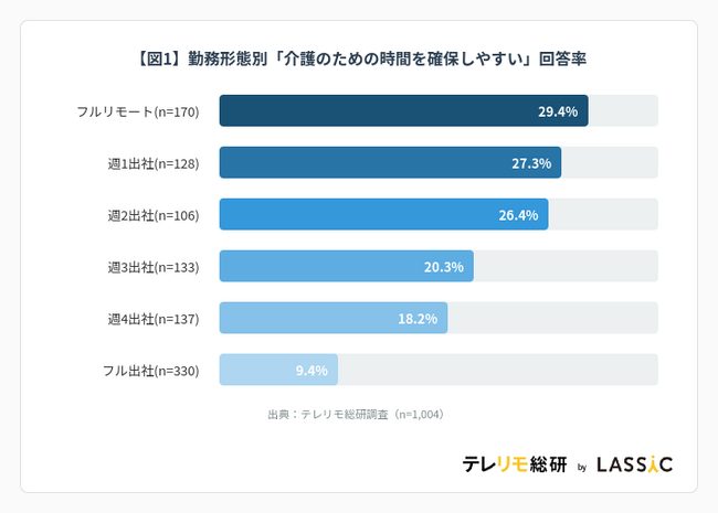フルリモートの29.4%が「介護時間を確保しやすい」
