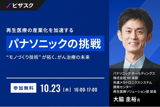 【 10/23 (木) 16:00 】再生医療の産業化を加速する、パナソニックの挑戦 無料オンラインセミナーを開催