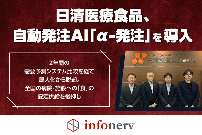 日清医療食品、東京大学発スタートアップによる自動発注AI「α-発注」を導入~2年間の需要予測システム比較を経て属人化からの脱却を目指す。全国の病院・施設への「食」の安定供給を後押し~
