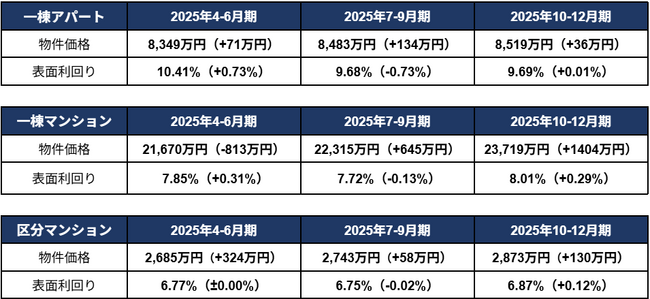 投資用不動産価格が全種別で過去最高額を更新、一棟マンションは2億3000万円台に到達