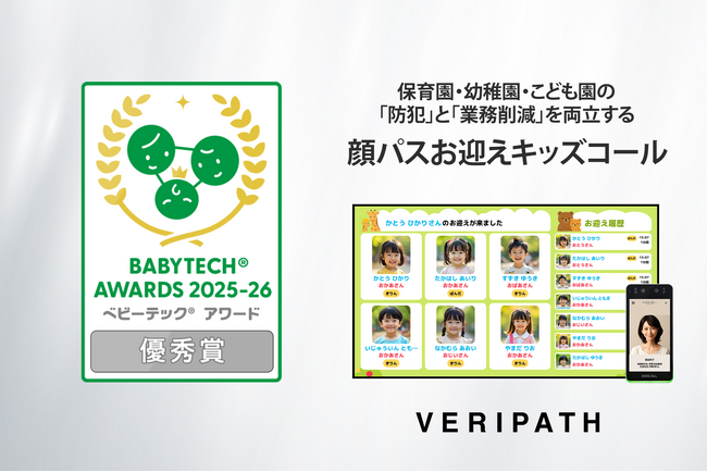 保育園・幼稚園・こども園の顔認証お迎えシステム『KIDSCALL(キッズコール)』が国内最大級の保育テック表彰「BabyTech(R) Awards2025-26」にて優秀賞を受賞