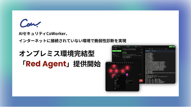 AIセキュリティのCoWorker、オンプレミス環境完結型「Red Agent」提供開始。インターネットに接続されていない環境での脆弱性診断を実現
