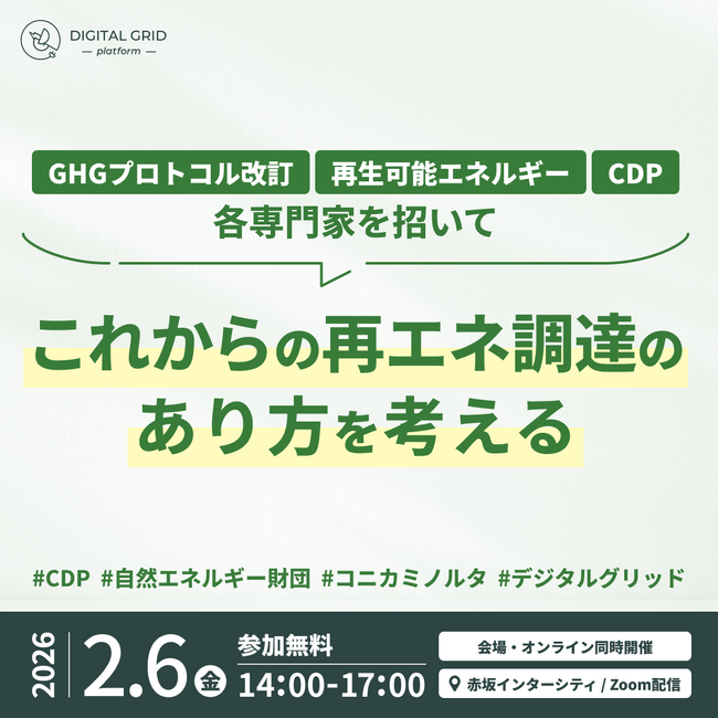 2月6日(金)開催「これからの再エネ調達のあり方を考える」無料セミナー~GHGプロトコル改訂/再生可能エネルギー/CDP専門家を招いて~