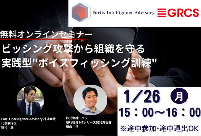 【ボイスフィッシング×無料オンラインセミナー】標的型メール訓練だけでは防げない「電話を悪用した攻撃”に備える」-実践型ボイスフィッシング訓練の要点を解説(1/26(月)15:00~)