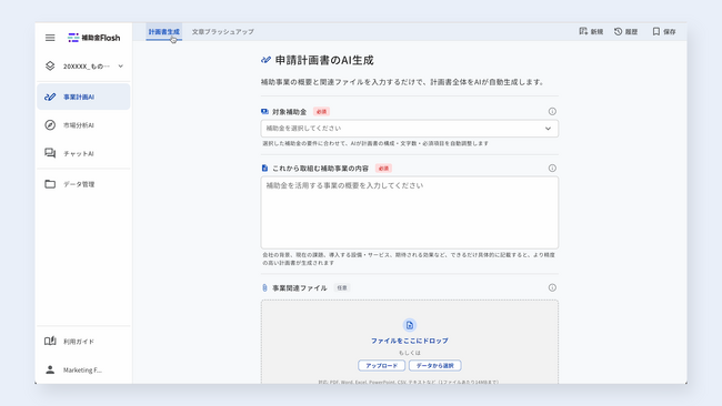 補助金Flash、補助金・融資などに使える汎用的な事業計画書のAI自動生成に対応