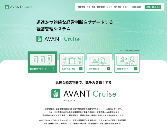 アバント、経営管理システム「AVANT Cruise」の製品サイトを公開