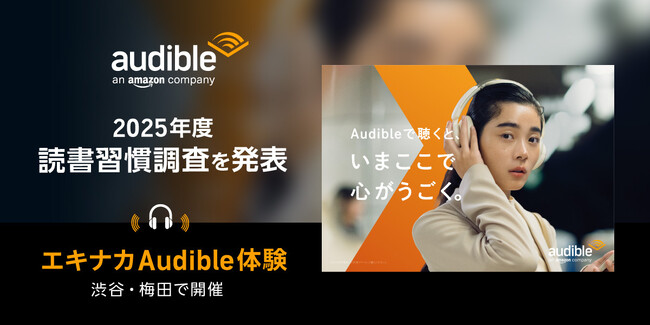 Audible、2025年度の読書習慣調査を発表「エキナカAudible体験」を渋谷(11/7-9)・梅田(11/14-16)で開催