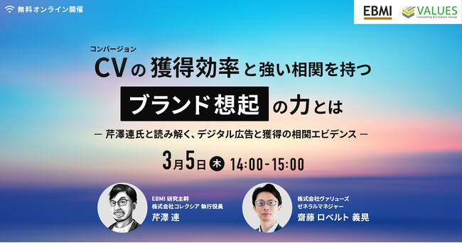 【ヴァリューズ×EBMI共催セミナー】コンバージョンの獲得効率と強い相関を持つ「ブランド想起」の力とは ― 芹澤連氏と読み解く、デジタル広告と獲得の相関エビデンス