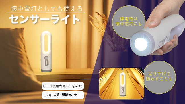 懐中電灯としても使えるセンサーライトを発売。