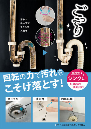 排水管のドロドロ汚れ…ドリル式でこそげ落とす!「ドリル式排水管汚れごっそりパイプ職人」を2月24日より発売