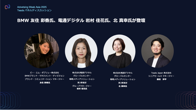 BMW 友住 彩香氏、電通デジタル 岩村 佳花氏、北 真幸氏がTeadsのセッションに登壇 Advertising Week Asia 2025
