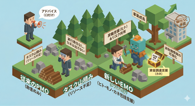 次世代コンサルは「リスク共有型」へ。モンスターバンクが2,900万円調達。事業検証から資金調達まで伴走する「Proofly」が、中小企業の新規事業を成功させる”EMO”へと進化。