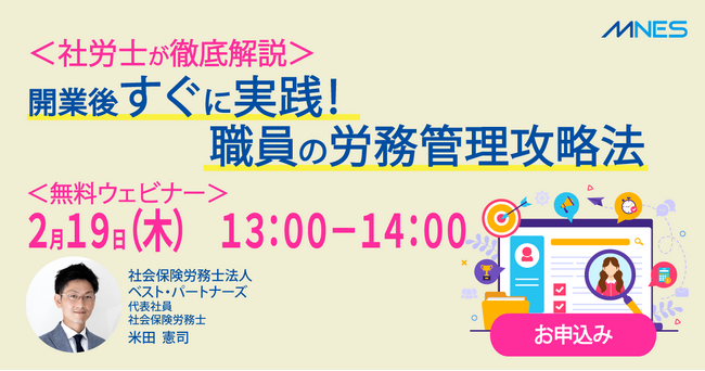 2/19(木)13時~「<社労士が徹底解説>開業後すぐに実践!職員の労務管理攻略法」セミナーを開催