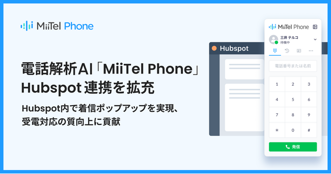 電話解析AI「MiiTel Phone」、Hubspot連携を拡充