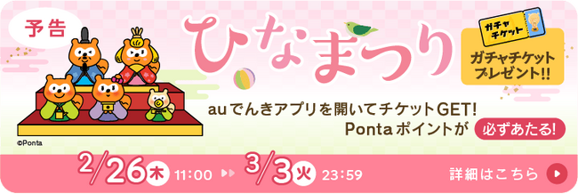 ひなまつり企画!auでんきアプリ起動でガチャチケットプレゼント
